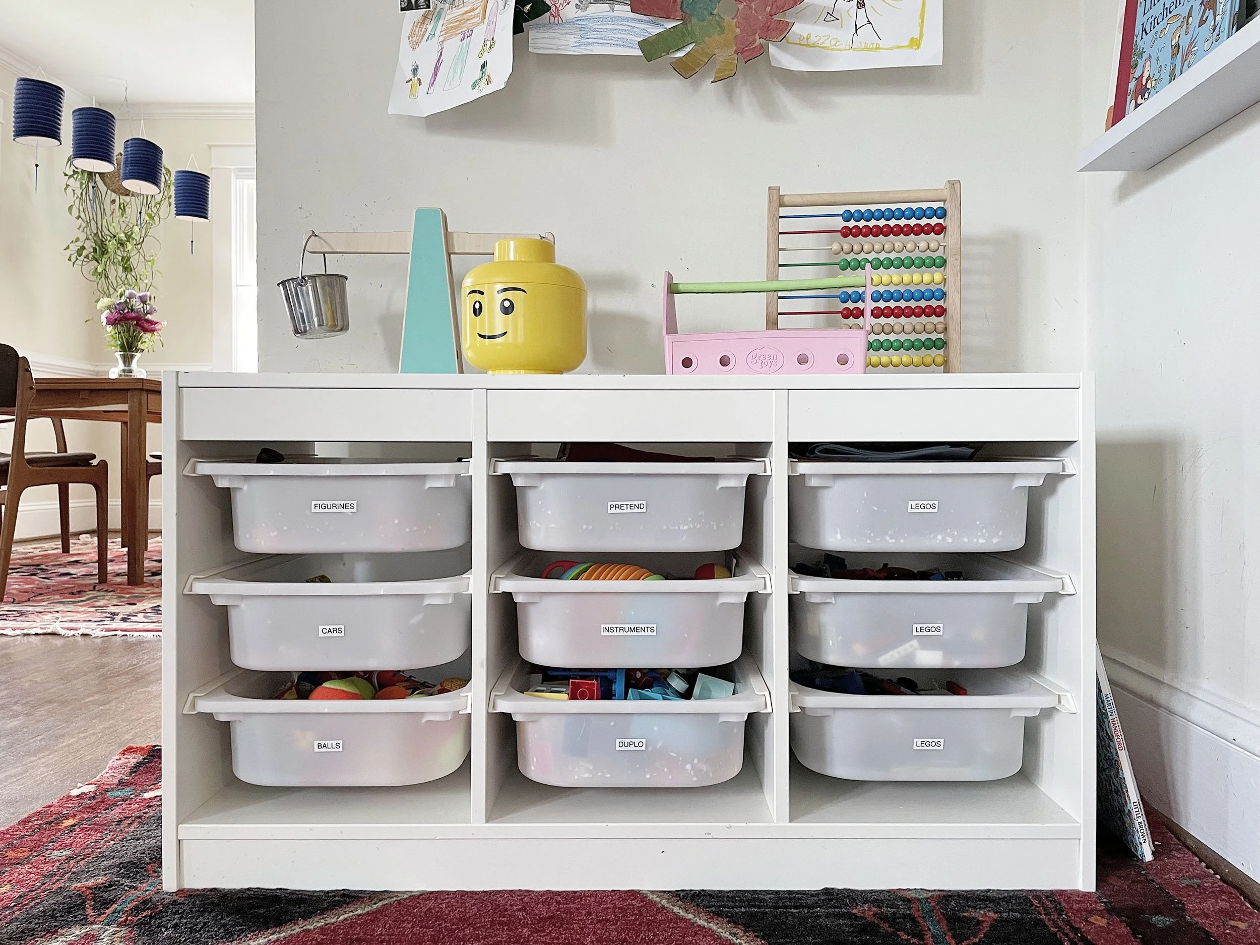 Alex carved out a niche in her living room for toys, featuring IKEA’s TROFAST system (we recommend this to clients all the time!)