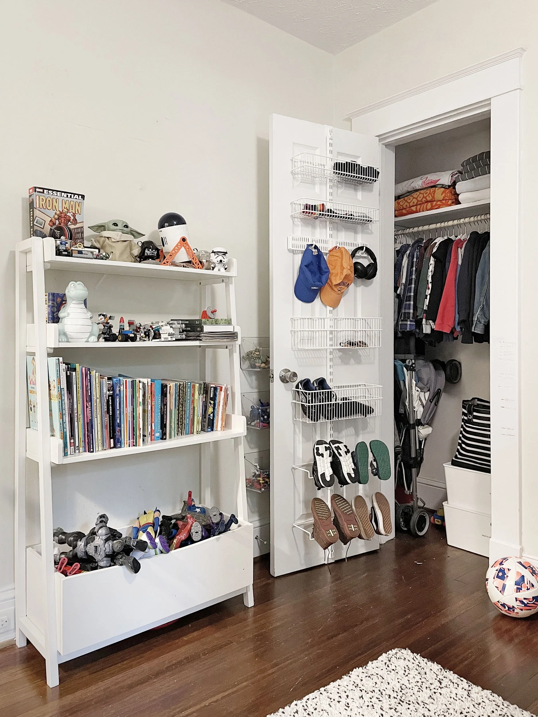 A: Isaac and Mimi’s closet. These are both multi-functioning spaces; we don’t have a coat or utility closet, so there are items in both rooms that are not necessarily connected to the room they are in.