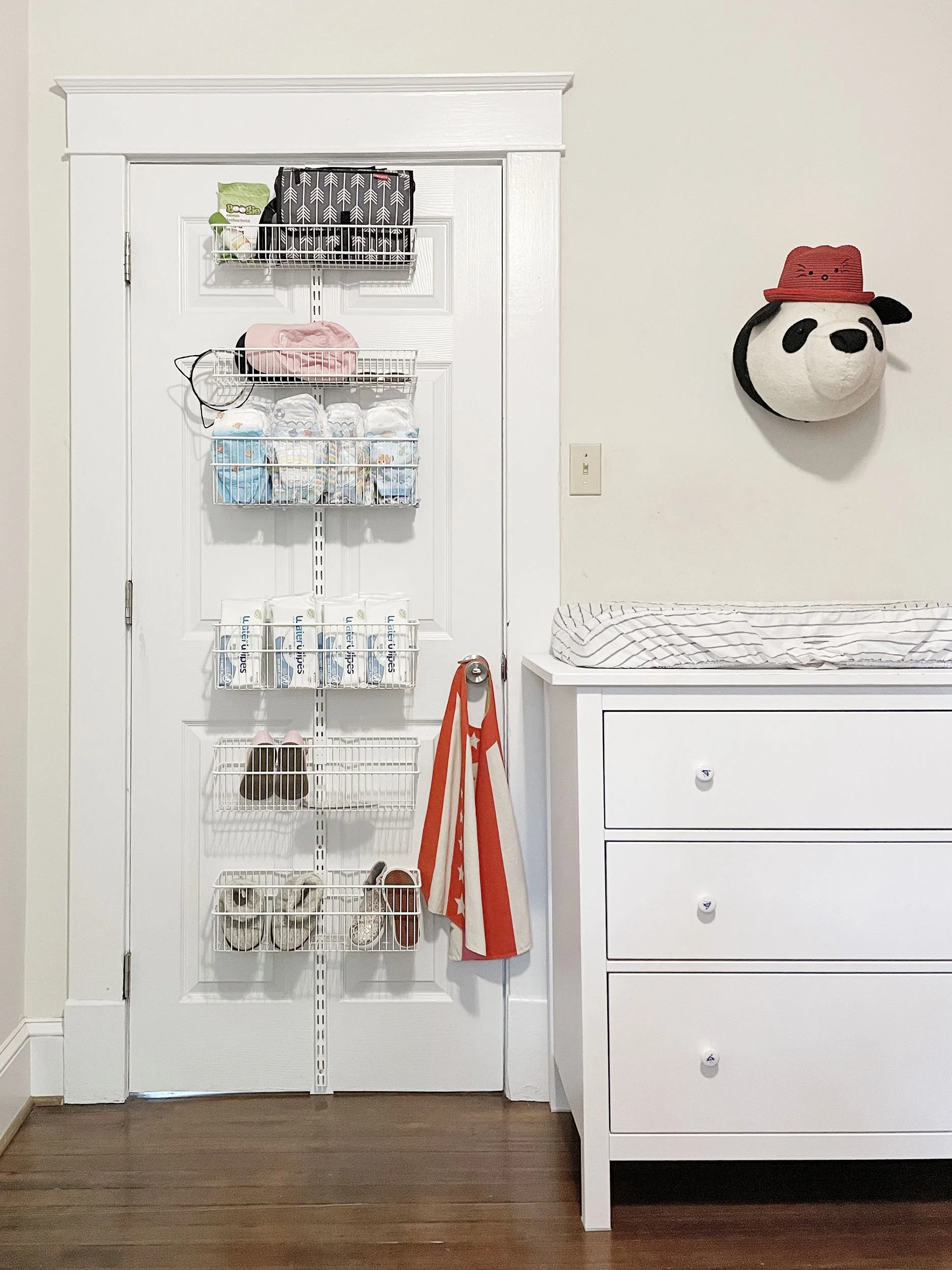 An Elfa over the door rack creates extra storage