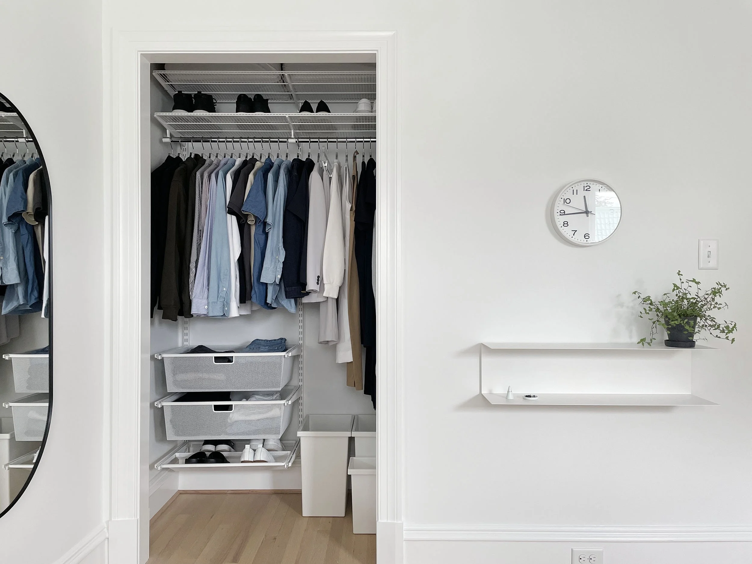 AFTER | An upgraded Elfa system to accommodate my husband’s clothing and shoes