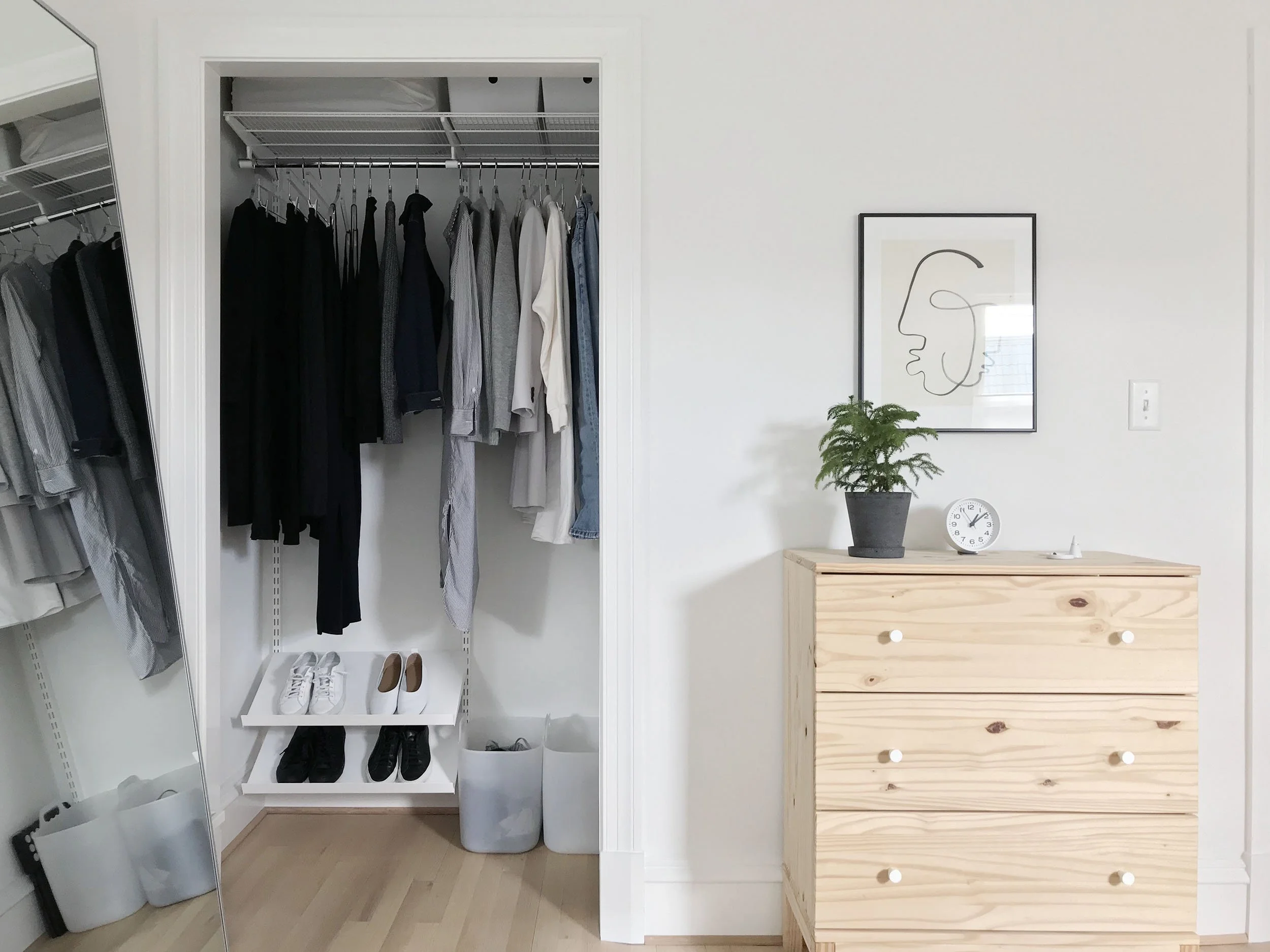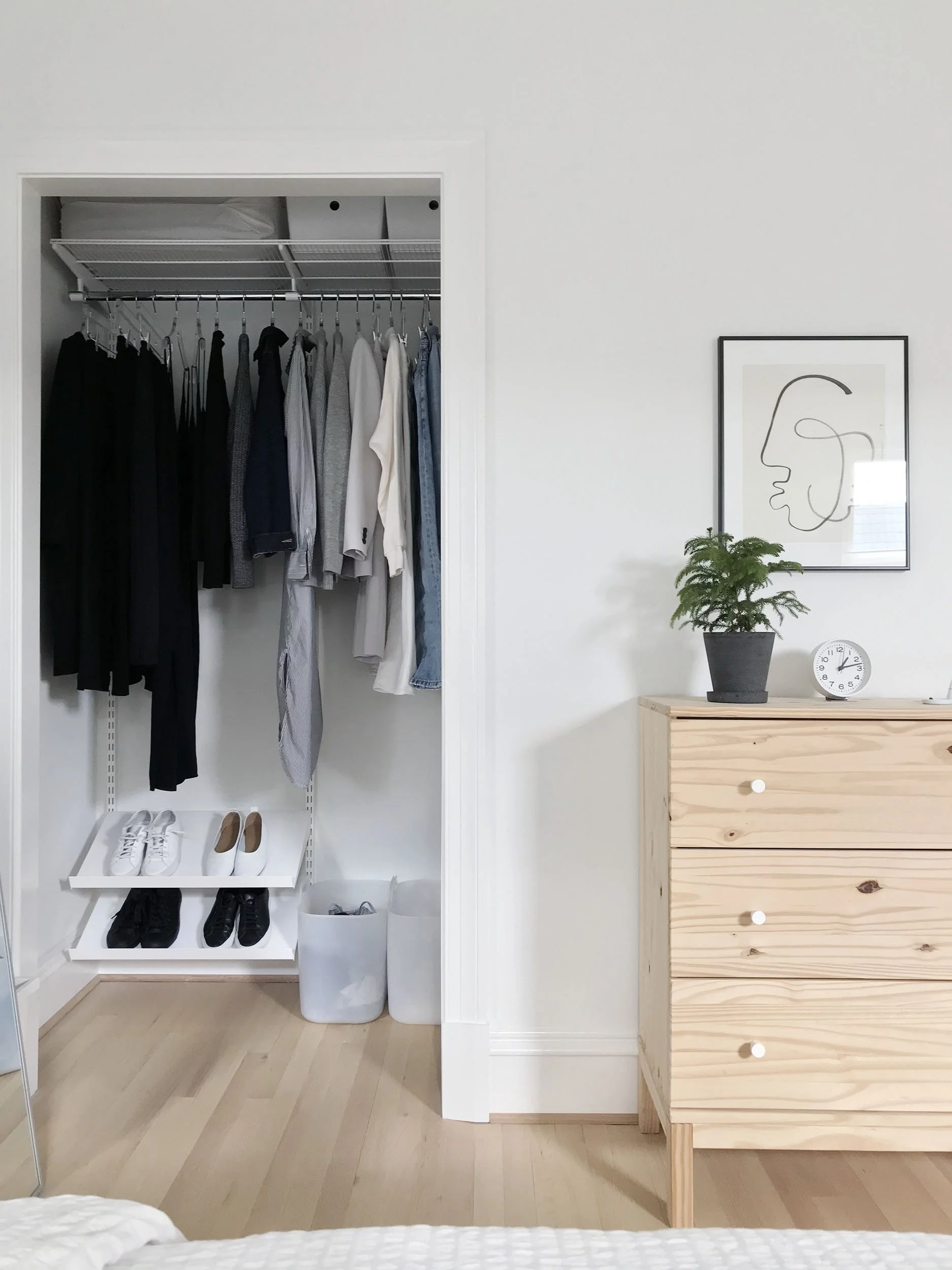 This Journal post will share how we made space for his stuff in my old bedroom (now our bedroom) without sacrificing design. While most couples may not be as minimalist as Jonathan and I, there are some great storage hacks I hope will provide inspiration. I plan to share our solutions for other areas of the home in subsequent posts, so check back!