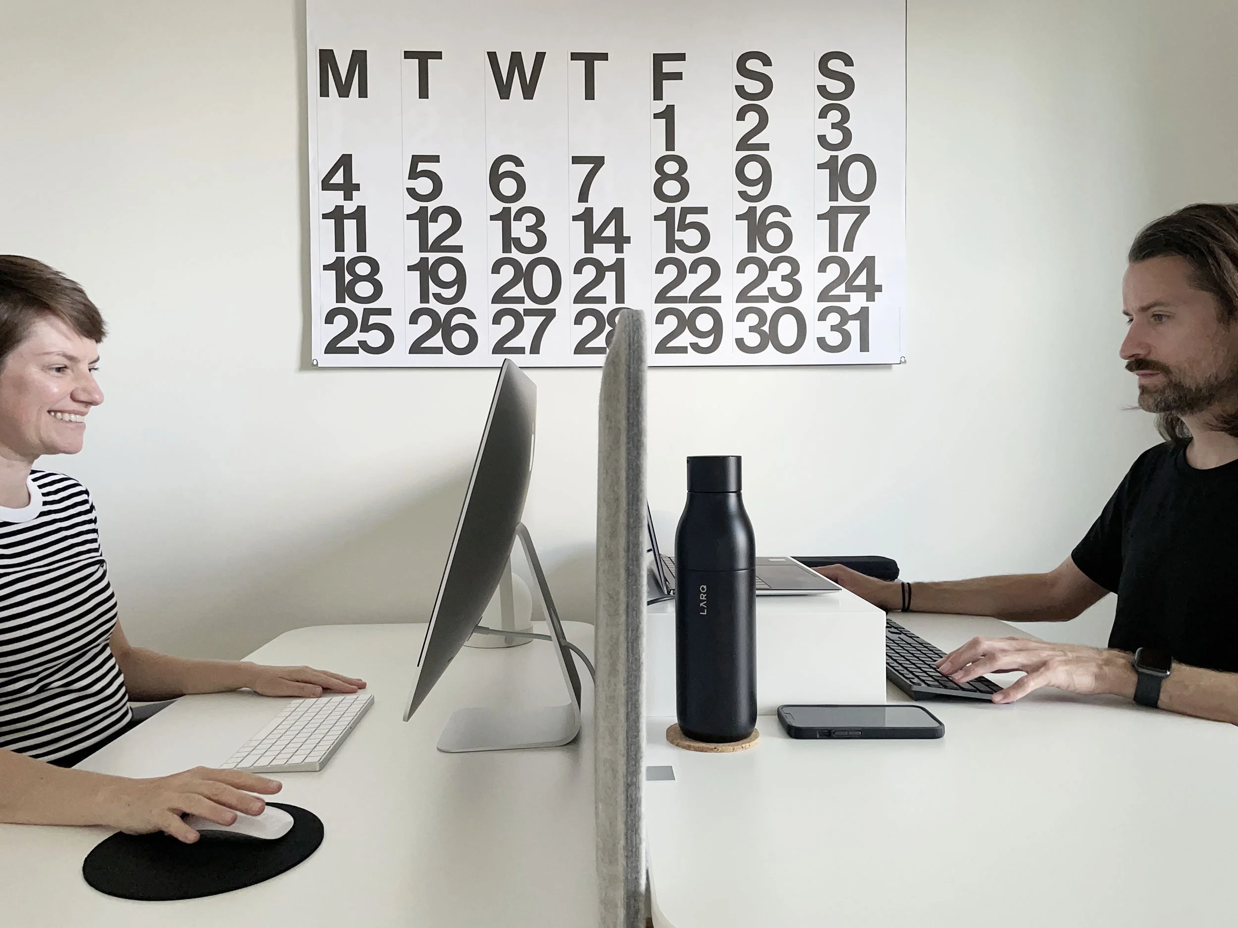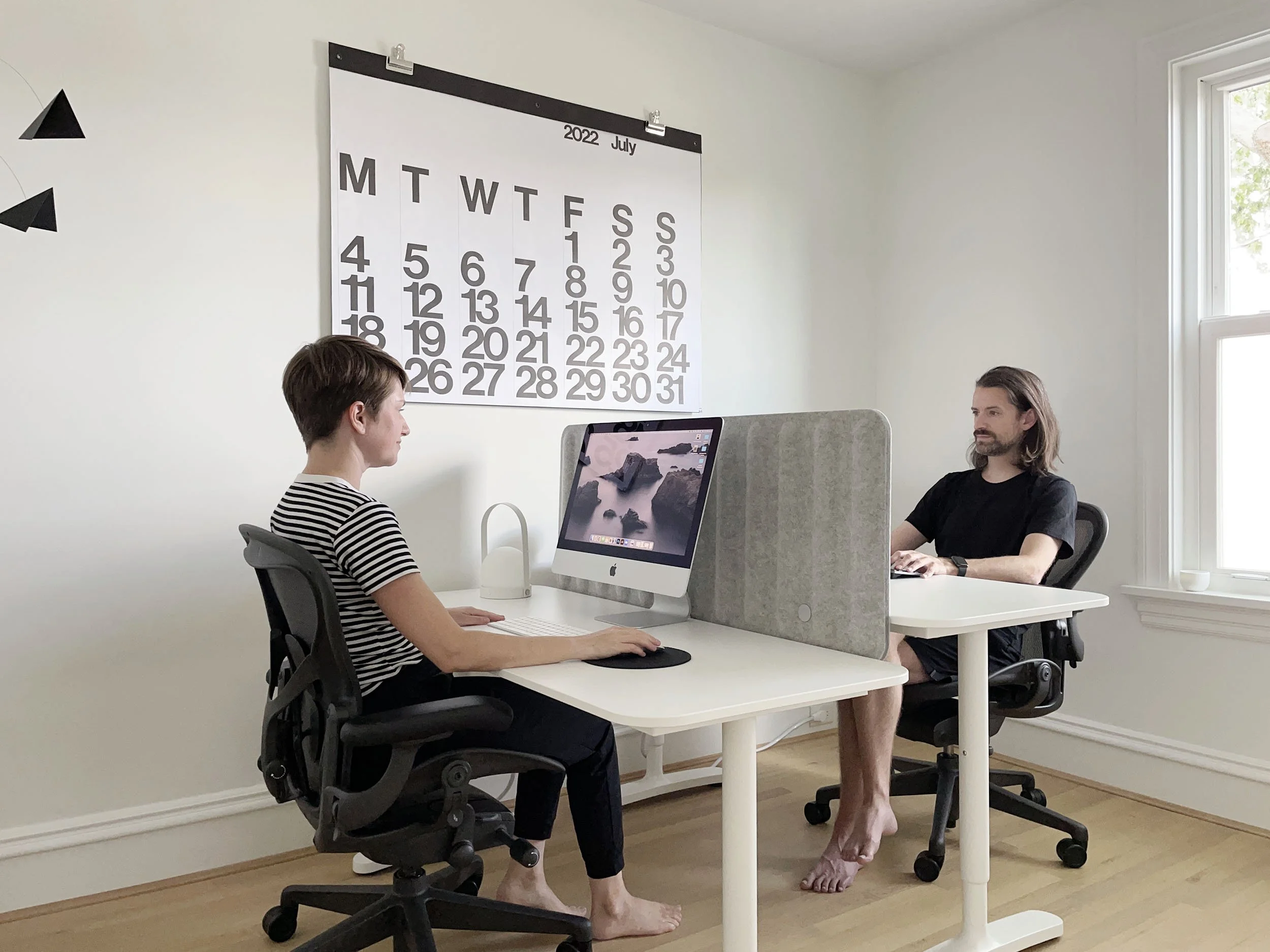 We’ve actually really enjoyed sharing a home office. We get to hang out all day and the bunnies get constant attention and companionship since we’re in there with them. It’s a really nice vibe; productive yet fun and warm. We occasionally have calls, but the only time it’s an issue is if we both have a call at the same time. In those rare instances, my husband takes his laptop to the dining table until my call is done (I have an iMac, which is not mobile). We always use our AirPods to minimize disruption from calls and we each have noise cancelling headphones when needed.
